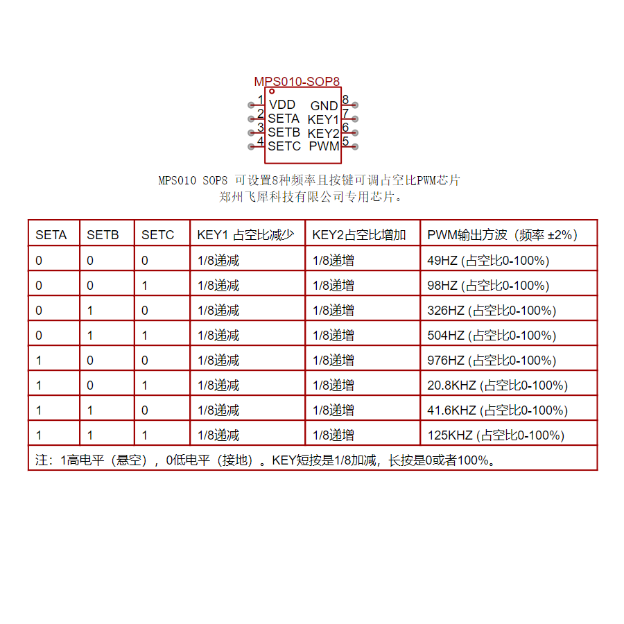 MPS010 SOP8 可设置8种频率且按键可调占空比PWM芯片郑州飞犀科技